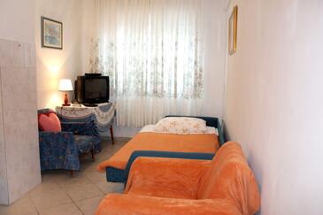 Az Apartman 7 főt tud fogadni. Az ágyak a/az 3 hálószobában, és a nappaliban/ben vannak, melynek méretei 77m2. A forró nyári estéket a vendégek saját balkonukon élvezhetik. Az apartmanból tengerre néző kilátás nyílik. A közös barbecue-helyet a vendég szabadon használhatja. A szállásegységbe lehetséges háziállatot hozni felár ellenében.