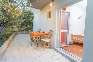 Az Apartman 5 főt tud fogadni. Az ágyak a/az 2 hálószobában, és a nappaliban/ben vannak, melynek méretei 56m2. A forró nyári estéket a vendégek saját teraszukon élvezhetik. Az apartmanból tengerre néző kilátás nyílik. A teljes élvezet és kikapcsolódás érdekében van saját barbecue hely is, csakis e szálláshely vendégei számára. A szállásegységbe lehetséges háziállatot hozni felár ellenében.