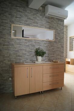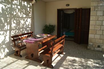 Az Apartman 4 főt tud fogadni. Az ágyak a/az 2 hálószobában vannak, melynek méretei 57m2. A forró nyári estéket a vendégek saját teraszukon élvezhetik. Az apartmanból tengerre néző kilátás nyílik. A közös barbecue-helyet a vendég szabadon használhatja. A szállásegységbe lehetséges háziállatot hozni, ennek költségét a foglalási díj tartalmazza.