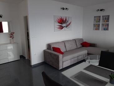Az Apartman 6 főt tud fogadni. Az ágyak a/az 2 hálószobában, és a nappaliban/ben vannak, melynek méretei 49m2. A forró nyári estéket a vendégek saját teraszukon élvezhetik. Az apartmanból tengerre néző kilátás nyílik. A teljes élvezet és kikapcsolódás érdekében van saját barbecue hely is, csakis e szálláshely vendégei számára. A szállásegységbe lehetséges háziállatot hozni, ennek költségét a foglalási díj tartalmazza.