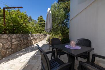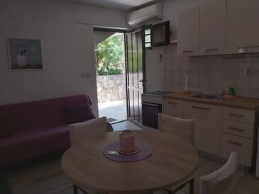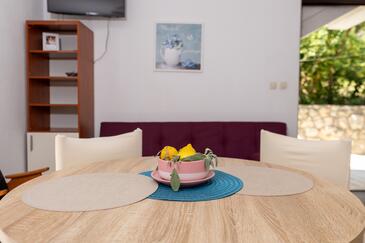 Az Apartman 5 főt tud fogadni. Az ágyak a/az 2 hálószobában, és a étkezőban/ben vannak, melynek méretei 43m2. A forró nyári estéket a vendégek saját teraszukon élvezhetik. Az apartmanból tengerre néző kilátás nyílik. A teljes élvezet és kikapcsolódás érdekében van saját barbecue hely is, csakis e szálláshely vendégei számára.