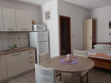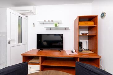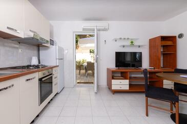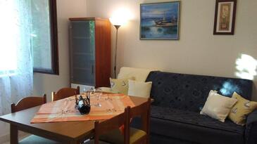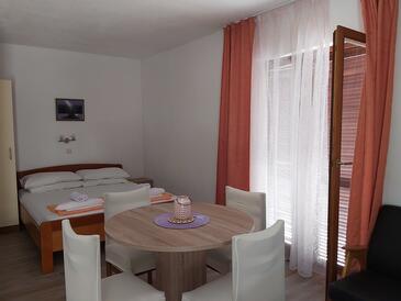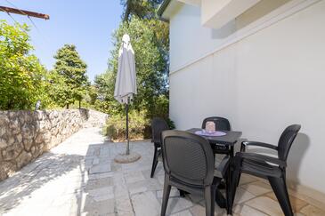 Az Apartman 5 főt tud fogadni. Az ágyak a/az 2 hálószobában, és a étkezőban/ben vannak, melynek méretei 43m2. A forró nyári estéket a vendégek saját teraszukon élvezhetik. Az apartmanból tengerre néző kilátás nyílik. A teljes élvezet és kikapcsolódás érdekében van saját barbecue hely is, csakis e szálláshely vendégei számára.