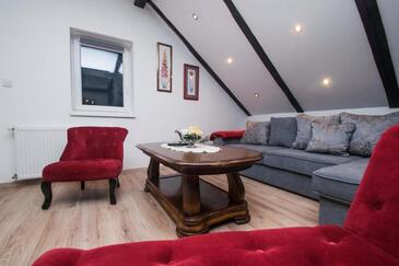 Az Apartman 6 főt tud fogadni. Az ágyak a/az 2 hálószobában, és a nappaliban/ben vannak, melynek méretei 90m2. A teljes élvezet és kikapcsolódás érdekében van saját barbecue hely is, csakis e szálláshely vendégei számára. A szállásegységbe lehetséges háziállatot hozni felár ellenében. A lefoglalt szállásegységhez nem tartozik erkély vagy terasz..