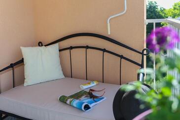 Az Apartman 7 főt tud fogadni. Az ágyak a/az 3 hálószobában vannak, melynek méretei 102m2. A forró nyári estéket a vendégek saját balkonukon élvezhetik. Az apartmanból tengerre néző kilátás nyílik. A közös barbecue-helyet a vendég szabadon használhatja.