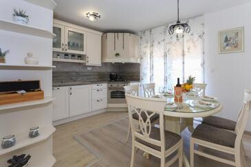 Az Apartman 7 főt tud fogadni. Az ágyak a/az 3 hálószobában vannak, melynek méretei 102m2. A forró nyári estéket a vendégek saját balkonukon élvezhetik. Az apartmanból tengerre néző kilátás nyílik. A közös barbecue-helyet a vendég szabadon használhatja.