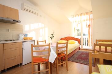 Az Stúdió 2 főt tud fogadni. Az ágyak a/az 1 hálószobában vannak, melynek méretei 16m2. A forró nyári estéket a vendégek saját teraszukon élvezhetik. A közös barbecue-helyet a vendég szabadon használhatja.