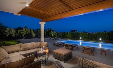Az Ház 8 főt tud fogadni. Az ágyak a/az 4 hálószobában vannak, melynek méretei 173m2. A forró nyári estéket a vendégek saját teraszukon élvezhetik. A házból tengerre néző kilátás nyílik. A közös barbecue-helyet a vendég szabadon használhatja. A vendégek itt tartózkodásuk ideje alatt kikapcsolódás céljából használhatják a magán medencét.