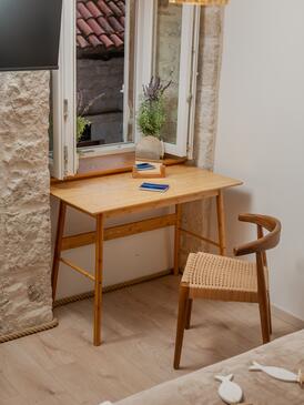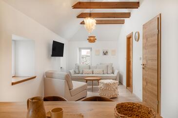 Az Ház 6 főt tud fogadni. Az ágyak a/az 2 hálószobában, és a nappaliban/ben vannak, melynek méretei 133m2. A forró nyári estéket a vendégek saját teraszukon élvezhetik. A szállásegységbe lehetséges háziállatot hozni felár ellenében.