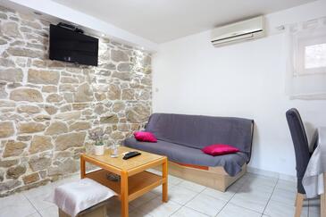 Az Apartman 5 főt tud fogadni. Az ágyak a/az 2 hálószobában vannak, melynek méretei 43m2. A forró nyári estéket a vendégek saját teraszukon élvezhetik. A közös barbecue-helyet a vendég szabadon használhatja. A szállásegységbe lehetséges háziállatot hozni felár ellenében. A szállásegység egyes helyiségei elkülönülnek a szállásegység többi részétől.