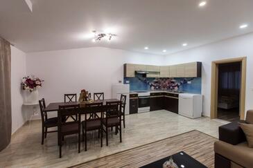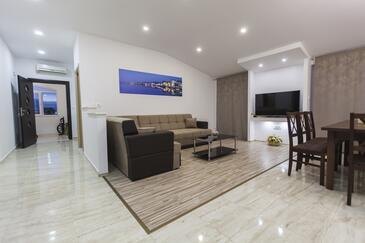 Az Apartman 6 főt tud fogadni. Az ágyak a/az 3 hálószobában vannak, melynek méretei 84m2. A forró nyári estéket a vendégek saját teraszukon élvezhetik. Az apartmanból tengerre néző kilátás nyílik. A közös barbecue-helyet a vendég szabadon használhatja.