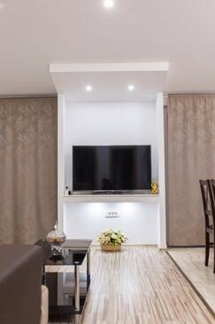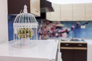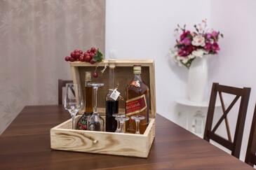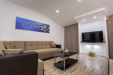 Az Apartman 6 főt tud fogadni. Az ágyak a/az 3 hálószobában vannak, melynek méretei 84m2. A forró nyári estéket a vendégek saját teraszukon élvezhetik. Az apartmanból tengerre néző kilátás nyílik. A közös barbecue-helyet a vendég szabadon használhatja.