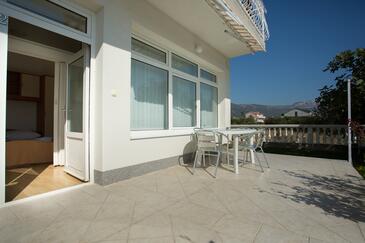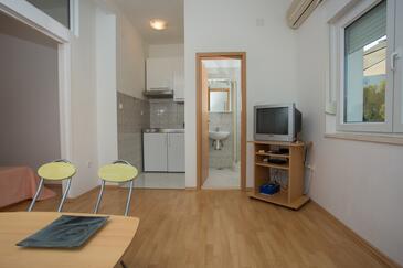 Az Stúdió 4 főt tud fogadni. Az ágyak a/az 1 hálószobában, és a nappaliban/ben vannak, melynek méretei 29m2. A forró nyári estéket a vendégek saját teraszukon élvezhetik. A stúdióból tengerre néző kilátás nyílik. A közös barbecue-helyet a vendég szabadon használhatja.