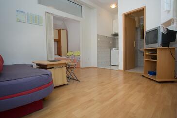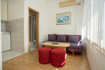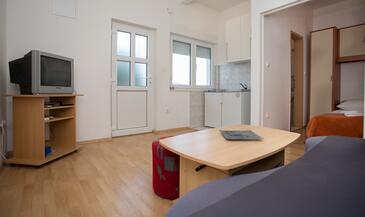 Az Stúdió 4 főt tud fogadni. Az ágyak a/az 1 hálószobában, és a nappaliban/ben vannak, melynek méretei 29m2. A forró nyári estéket a vendégek saját teraszukon élvezhetik. A stúdióból tengerre néző kilátás nyílik. A közös barbecue-helyet a vendég szabadon használhatja.