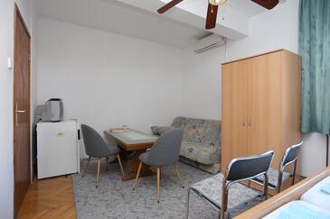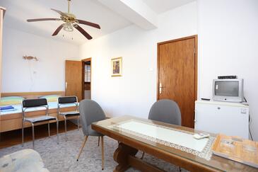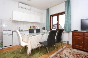 Az Apartman 8 főt tud fogadni. Az ágyak a/az 3 hálószobában, és a nappaliban/ben vannak, melynek méretei 82m2. A forró nyári estéket a vendégek saját balkonukon élvezhetik. Az apartmanból tengerre néző kilátás nyílik. A közös barbecue-helyet a vendég szabadon használhatja. A szállásegységbe lehetséges háziállatot hozni felár ellenében. A szállásegység nincsen ajtóval elválasztva az objektum többi helyiségétől.