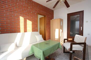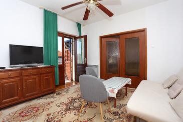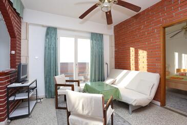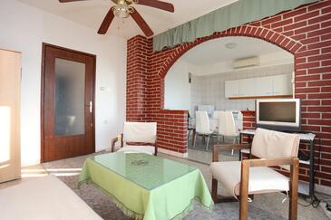 Az Apartman 8 főt tud fogadni. Az ágyak a/az 3 hálószobában, és a nappaliban/ben vannak, melynek méretei 82m2. A forró nyári estéket a vendégek saját balkonukon élvezhetik. Az apartmanból tengerre néző kilátás nyílik. A közös barbecue-helyet a vendég szabadon használhatja. A szállásegységbe lehetséges háziállatot hozni felár ellenében. A szállásegység nincsen ajtóval elválasztva az objektum többi helyiségétől.