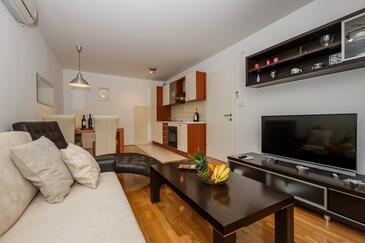 Az Apartman 5 főt tud fogadni. Az ágyak a/az 2 hálószobában, és a nappaliban/ben vannak, melynek méretei 45m2. A lefoglalt szállásegységhez nem tartozik erkély vagy terasz..