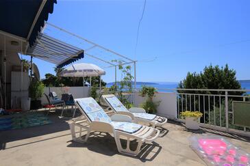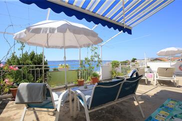 Az Apartman 5 főt tud fogadni. Az ágyak a/az 2 hálószobában, és a nappaliban/ben vannak, melynek méretei 48m2. A forró nyári estéket a vendégek saját teraszukon élvezhetik. Az apartmanból tengerre néző kilátás nyílik. A közös barbecue-helyet a vendég szabadon használhatja. A szállásegységbe lehetséges háziállatot hozni felár ellenében.