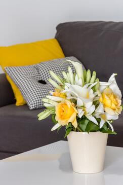 Az Apartman 4 főt tud fogadni. Az ágyak a/az 1 hálószobában, és a nappaliban/ben vannak, melynek méretei 36m2. A forró nyári estéket a vendégek saját teraszukon élvezhetik. Az apartmanból tengerre néző kilátás nyílik. A közös barbecue-helyet a vendég szabadon használhatja.