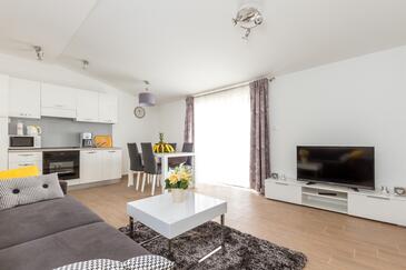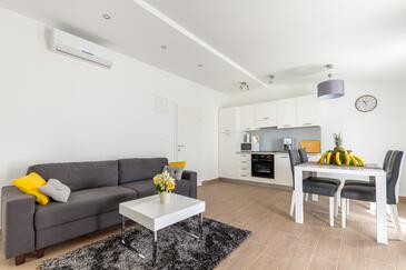 Az Apartman 4 főt tud fogadni. Az ágyak a/az 1 hálószobában, és a nappaliban/ben vannak, melynek méretei 36m2. A forró nyári estéket a vendégek saját teraszukon élvezhetik. Az apartmanból tengerre néző kilátás nyílik. A közös barbecue-helyet a vendég szabadon használhatja.