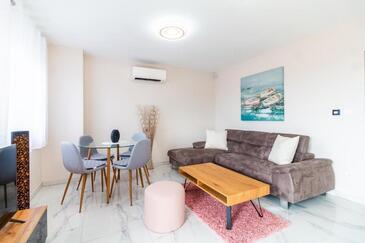 Az Apartman 5 főt tud fogadni. Az ágyak a/az 2 hálószobában, és a nappaliban/ben vannak, melynek méretei 75m2. A forró nyári estéket a vendégek saját teraszukon élvezhetik. Az apartmanból tengerre néző kilátás nyílik. A közös barbecue-helyet a vendég szabadon használhatja. A vendégek itt tartózkodásuk ideje alatt használhatják a közös medencét.