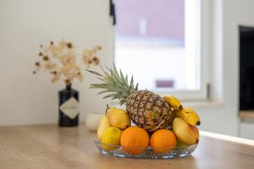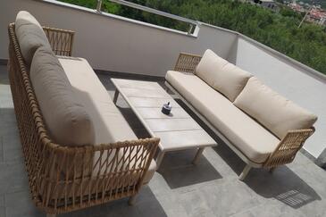 Az Apartman 6 főt tud fogadni. Az ágyak a/az 3 hálószobában vannak, melynek méretei 112m2. A forró nyári estéket a vendégek saját teraszukon élvezhetik. Az apartmanból tengerre néző kilátás nyílik. A teljes élvezet és kikapcsolódás érdekében van saját barbecue hely is, csakis e szálláshely vendégei számára. A vendégek itt tartózkodásuk ideje alatt kikapcsolódás céljából használhatják a magán medencét.