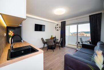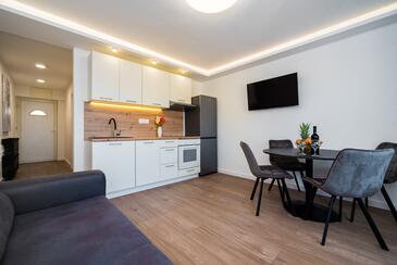 Az Apartman 3 főt tud fogadni. Az ágyak a/az 1 hálószobában, és a nappaliban/ben vannak, melynek méretei 34m2. A forró nyári estéket a vendégek saját balkonukon élvezhetik. Az apartmanból tengerre néző kilátás nyílik.