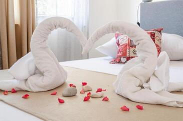 Az Ház 6 főt tud fogadni. Az ágyak a/az 3 hálószobában vannak, melynek méretei 75m2. A forró nyári estéket a vendégek saját teraszukon élvezhetik. A házból tengerre néző kilátás nyílik. A közös barbecue-helyet a vendég szabadon használhatja. A szállásegységbe lehetséges háziállatot hozni, ennek költségét a foglalási díj tartalmazza. A lefoglalt szállásegység bizonyos helyiségei nem összekötöttek.