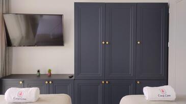 Az Ház 8 főt tud fogadni. Az ágyak a/az 3 hálószobában, és a nappaliban/ben vannak, melynek méretei 74m2. A forró nyári estéket a vendégek saját teraszukon élvezhetik. A házból tengerre néző kilátás nyílik. A teljes élvezet és kikapcsolódás érdekében van saját barbecue hely is, csakis e szálláshely vendégei számára. A vendégek itt tartózkodásuk ideje alatt kikapcsolódás céljából használhatják a magán medencét.