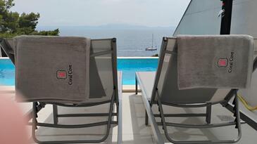 Az Ház 8 főt tud fogadni. Az ágyak a/az 3 hálószobában, és a nappaliban/ben vannak, melynek méretei 74m2. A forró nyári estéket a vendégek saját teraszukon élvezhetik. A házból tengerre néző kilátás nyílik. A teljes élvezet és kikapcsolódás érdekében van saját barbecue hely is, csakis e szálláshely vendégei számára. A vendégek itt tartózkodásuk ideje alatt kikapcsolódás céljából használhatják a magán medencét.