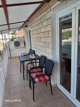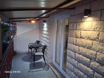 Az Apartman 5 főt tud fogadni. Az ágyak a/az 2 hálószobában, és a nappaliban/ben vannak, melynek méretei 54m2. A forró nyári estéket a vendégek saját balkonukon élvezhetik. Az apartmanból tengerre néző kilátás nyílik. A közös barbecue-helyet a vendég szabadon használhatja.