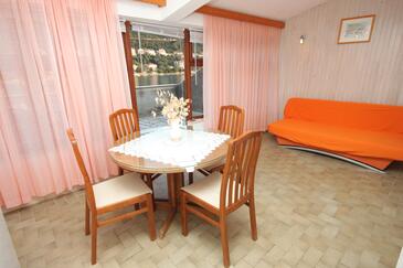 Az Apartman 5 főt tud fogadni. Az ágyak a/az 2 hálószobában, és a nappaliban/ben vannak, melynek méretei 40m2. A forró nyári estéket a vendégek saját teraszukon élvezhetik. Az apartmanból tengerre néző kilátás nyílik. A közös barbecue-helyet a vendég szabadon használhatja.