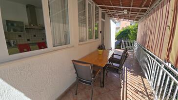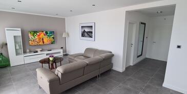 Az Apartman 6 főt tud fogadni. Az ágyak a/az 3 hálószobában vannak, melynek méretei 95m2. A forró nyári estéket a vendégek saját teraszukon élvezhetik. Az apartmanból tengerre néző kilátás nyílik. A közös barbecue-helyet a vendég szabadon használhatja.