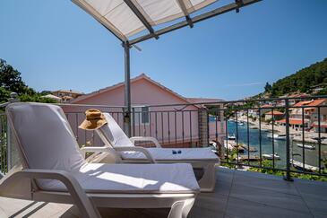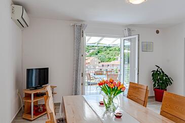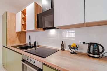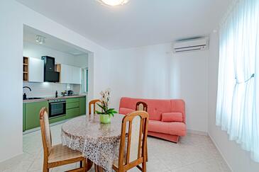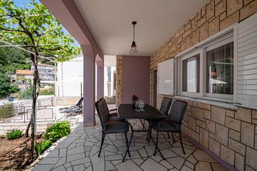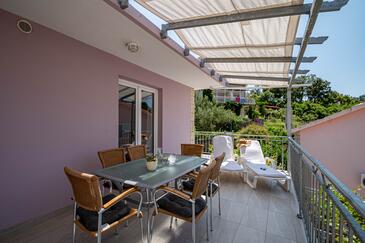 Az Apartman 4 főt tud fogadni. Az ágyak a/az 2 hálószobában vannak, melynek méretei 57m2. A forró nyári estéket a vendégek saját teraszukon élvezhetik. Az apartmanból tengerre néző kilátás nyílik. A szállásegységbe lehetséges háziállatot hozni felár ellenében.
