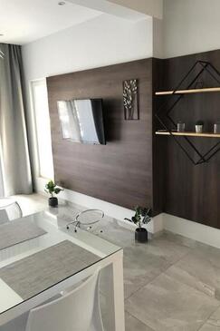 Az Apartman 2 főt tud fogadni. Az ágyak a/az 1 hálószobában vannak, melynek méretei 31m2. A forró nyári estéket a vendégek saját balkonukon élvezhetik. Az apartmanból tengerre néző kilátás nyílik. A közös barbecue-helyet a vendég szabadon használhatja. A szállásegységbe lehetséges háziállatot hozni, ennek költségét a foglalási díj tartalmazza.