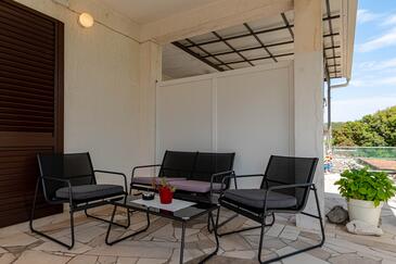 Az Apartman 4 főt tud fogadni. Az ágyak a/az 1 hálószobában, és a nappaliban/ben vannak, melynek méretei 39m2. A forró nyári estéket a vendégek saját teraszukon élvezhetik. Az apartmanból tengerre néző kilátás nyílik. A közös barbecue-helyet a vendég szabadon használhatja.