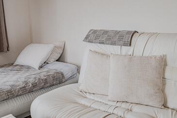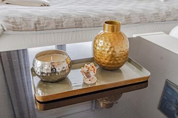Az Apartman 3 főt tud fogadni. Az ágyak a/az 1 hálószobában, és a nappaliban/ben vannak, melynek méretei 43m2. A forró nyári estéket a vendégek saját teraszukon élvezhetik. Az apartmanból tengerre néző kilátás nyílik. A közös barbecue-helyet a vendég szabadon használhatja.