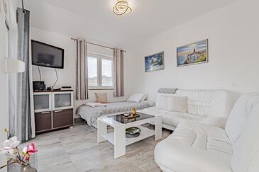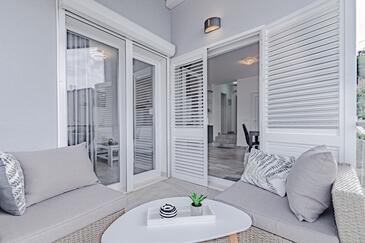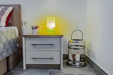 Az Apartman 3 főt tud fogadni. Az ágyak a/az 1 hálószobában, és a nappaliban/ben vannak, melynek méretei 43m2. A forró nyári estéket a vendégek saját teraszukon élvezhetik. Az apartmanból tengerre néző kilátás nyílik. A közös barbecue-helyet a vendég szabadon használhatja.
