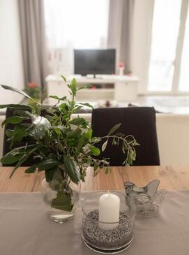 Az Apartman 4 főt tud fogadni. Az ágyak a/az 2 hálószobában, és a nappaliban/ben vannak, melynek méretei 54m2. A forró nyári estéket a vendégek saját teraszukon élvezhetik. A szállásegységbe lehetséges háziállatot hozni felár ellenében.