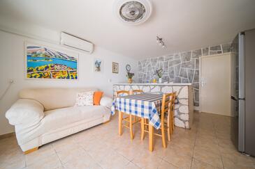 Az Apartman 5 főt tud fogadni. Az ágyak a/az 3 hálószobában vannak, melynek méretei 62m2. A forró nyári estéket a vendégek saját teraszukon élvezhetik. Az apartmanból tengerre néző kilátás nyílik. A közös barbecue-helyet a vendég szabadon használhatja. A szállásegységbe lehetséges háziállatot hozni, ennek költségét a foglalási díj tartalmazza.