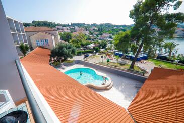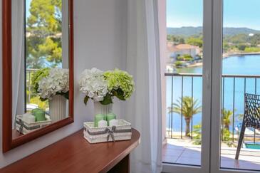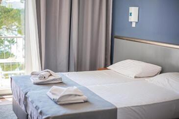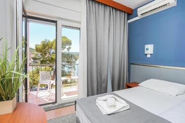 Az Szoba 2 főt tud fogadni. Az ágyak a/az 1 hálószobában vannak, melynek méretei 20m2. A forró nyári estéket a vendégek saját balkonukon élvezhetik. A szobából tengerre néző kilátás nyílik. A vendégek itt tartózkodásuk ideje alatt használhatják a közös medencét. A lefoglalt szállásegység a szoba kategóriába tartozik, amely saját fürdőszobával rendelkezik, azonban konyha illetve konyha használat nem tartozik a felszereltséghez..