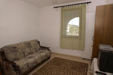 Az Apartman 4 főt tud fogadni. Az ágyak a/az 1 hálószobában, és a nappaliban/ben vannak, melynek méretei 35m2. Az apartmanból tengerre néző kilátás nyílik. A közös barbecue-helyet a vendég szabadon használhatja. A lefoglalt szállásegység közös teraszt használ..