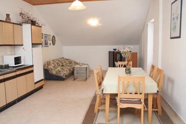 Az Apartman 4 főt tud fogadni. Az ágyak a/az 2 hálószobában vannak, melynek méretei 88m2. A forró nyári estéket a vendégek saját teraszukon élvezhetik. Az apartmanból tengerre néző kilátás nyílik. A közös barbecue-helyet a vendég szabadon használhatja.