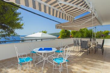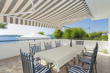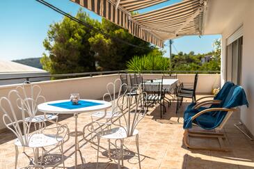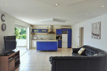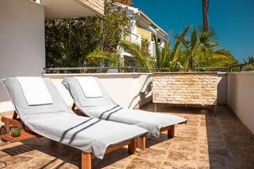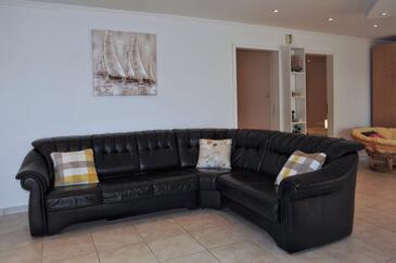Az Apartman 8 főt tud fogadni. Az ágyak a/az 3 hálószobában, és a nappaliban/ben vannak, melynek méretei 123m2. A forró nyári estéket a vendégek saját teraszukon élvezhetik. Az apartmanból tengerre néző kilátás nyílik. A közös barbecue-helyet a vendég szabadon használhatja. A szállásegységbe lehetséges háziállatot hozni, ennek költségét a foglalási díj tartalmazza.