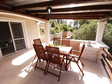 Az Ház 6 főt tud fogadni. Az ágyak a/az 2 hálószobában, és a nappaliban/ben vannak, melynek méretei 48m2. A forró nyári estéket a vendégek saját teraszukon élvezhetik. A házból tengerre néző kilátás nyílik. A teljes élvezet és kikapcsolódás érdekében van saját barbecue hely is, csakis e szálláshely vendégei számára. A szállásegységbe lehetséges háziállatot hozni felár ellenében.