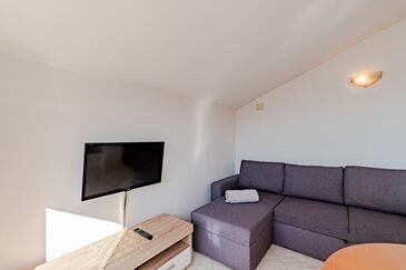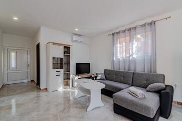 Az Apartman 6 főt tud fogadni. Az ágyak a/az 3 hálószobában vannak, melynek méretei 60m2. A forró nyári estéket a vendégek saját balkonukon élvezhetik. Az apartmanból tengerre néző kilátás nyílik. A közös barbecue-helyet a vendég szabadon használhatja. A szállásegységbe lehetséges háziállatot hozni felár ellenében.