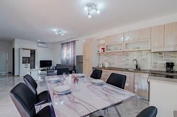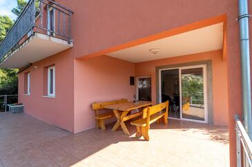 Az Apartman 6 főt tud fogadni. Az ágyak a/az 3 hálószobában vannak, melynek méretei 60m2. A forró nyári estéket a vendégek saját balkonukon élvezhetik. Az apartmanból tengerre néző kilátás nyílik. A közös barbecue-helyet a vendég szabadon használhatja. A szállásegységbe lehetséges háziállatot hozni felár ellenében.