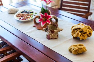 Az Ház 6 főt tud fogadni. Az ágyak a/az 3 hálószobában vannak, melynek méretei 102m2. A forró nyári estéket a vendégek saját teraszukon élvezhetik. A házból tengerre néző kilátás nyílik. A teljes élvezet és kikapcsolódás érdekében van saját barbecue hely is, csakis e szálláshely vendégei számára. A vendégek itt tartózkodásuk ideje alatt kikapcsolódás céljából használhatják a magán medencét.