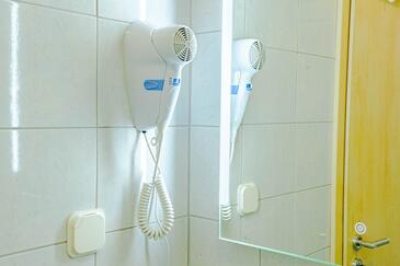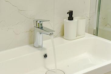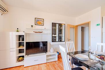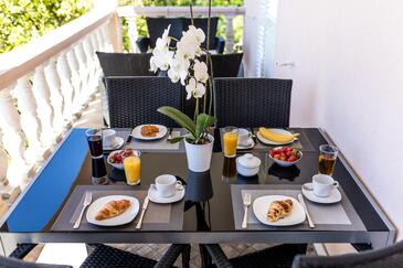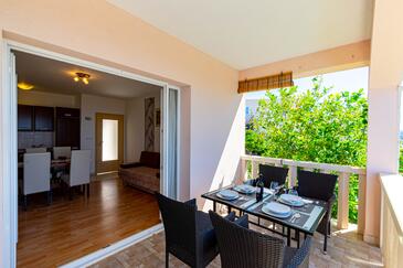 Az Apartman 6 főt tud fogadni. Az ágyak a/az 2 hálószobában, és a nappaliban/ben vannak, melynek méretei 56m2. A forró nyári estéket a vendégek saját teraszukon élvezhetik. Az apartmanból tengerre néző kilátás nyílik. A közös barbecue-helyet a vendég szabadon használhatja. A vendégek itt tartózkodásuk ideje alatt használhatják a közös medencét. A lefoglalt szállásegység vendégeinek az érkezés napján a helyszínen letétet kell fizetniük (az összeg a honlapon fel van tüntetve).