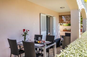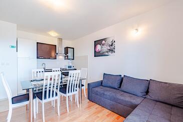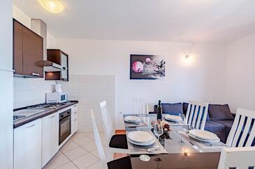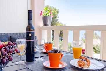 Az Apartman 6 főt tud fogadni. Az ágyak a/az 2 hálószobában, és a nappaliban/ben vannak, melynek méretei 56m2. A forró nyári estéket a vendégek saját teraszukon élvezhetik. Az apartmanból tengerre néző kilátás nyílik. A közös barbecue-helyet a vendég szabadon használhatja. A vendégek itt tartózkodásuk ideje alatt használhatják a közös medencét. A lefoglalt szállásegység vendégeinek az érkezés napján a helyszínen letétet kell fizetniük (az összeg a honlapon fel van tüntetve).