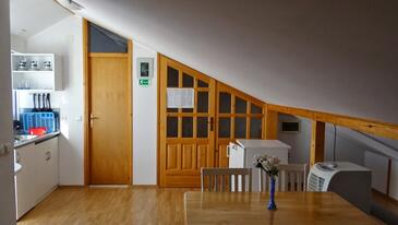 Az Apartman 4 főt tud fogadni. Az ágyak a/az 1 hálószobában, és a étkezőban/ben vannak, melynek méretei 27m2. A forró nyári estéket a vendégek saját teraszukon élvezhetik. Az apartmanból tengerre néző kilátás nyílik. A közös barbecue-helyet a vendég szabadon használhatja. A szállásegységbe lehetséges háziállatot hozni felár ellenében.